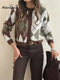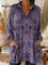 Women's Retro Print V-neck Long Sleeve Casual Loose Cotton Top