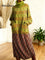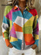 Women's Retro Splicing Colorful Flowers Pattern Art High-neck Long-sleeve Casual Loose Knit Dress