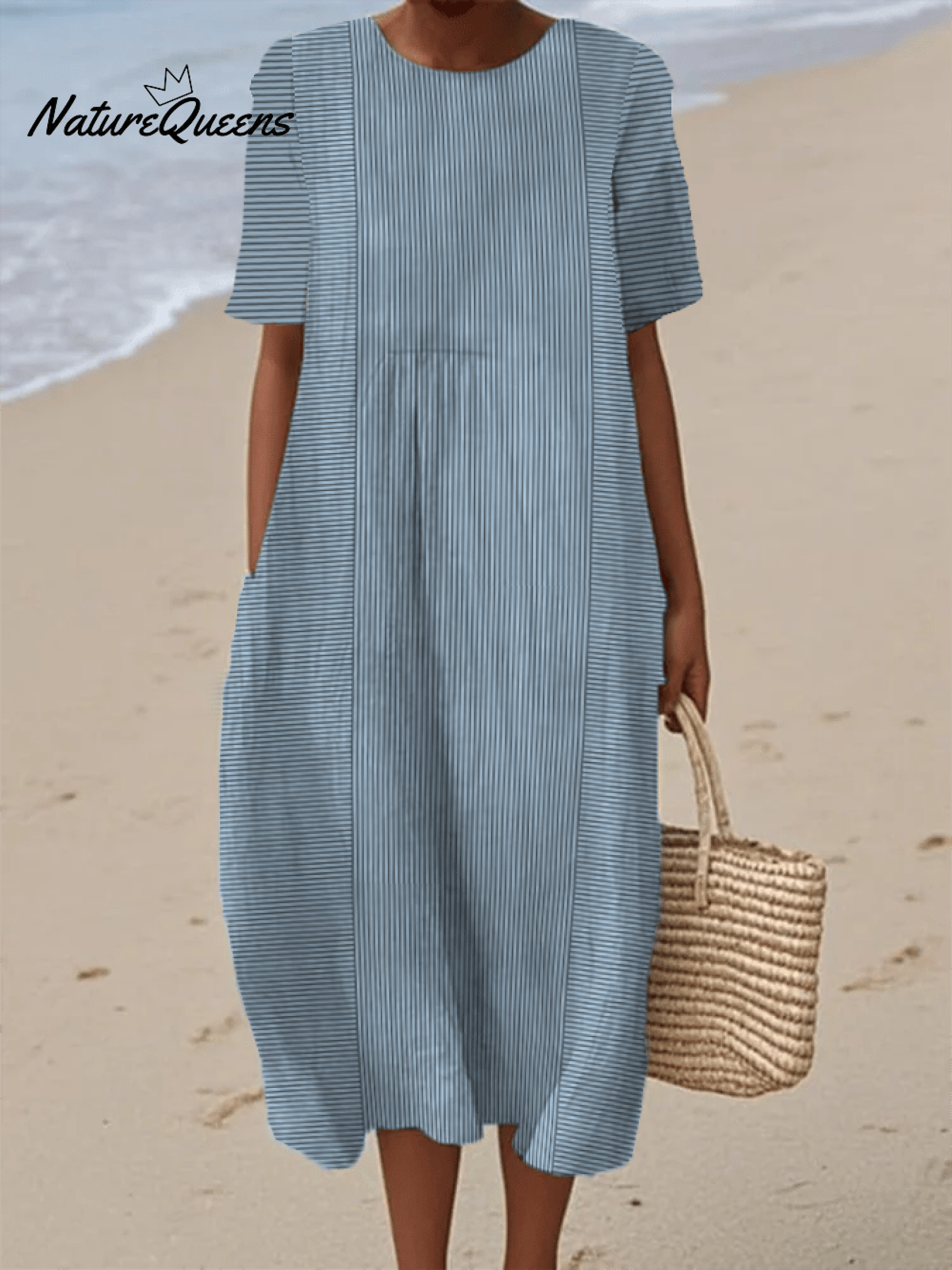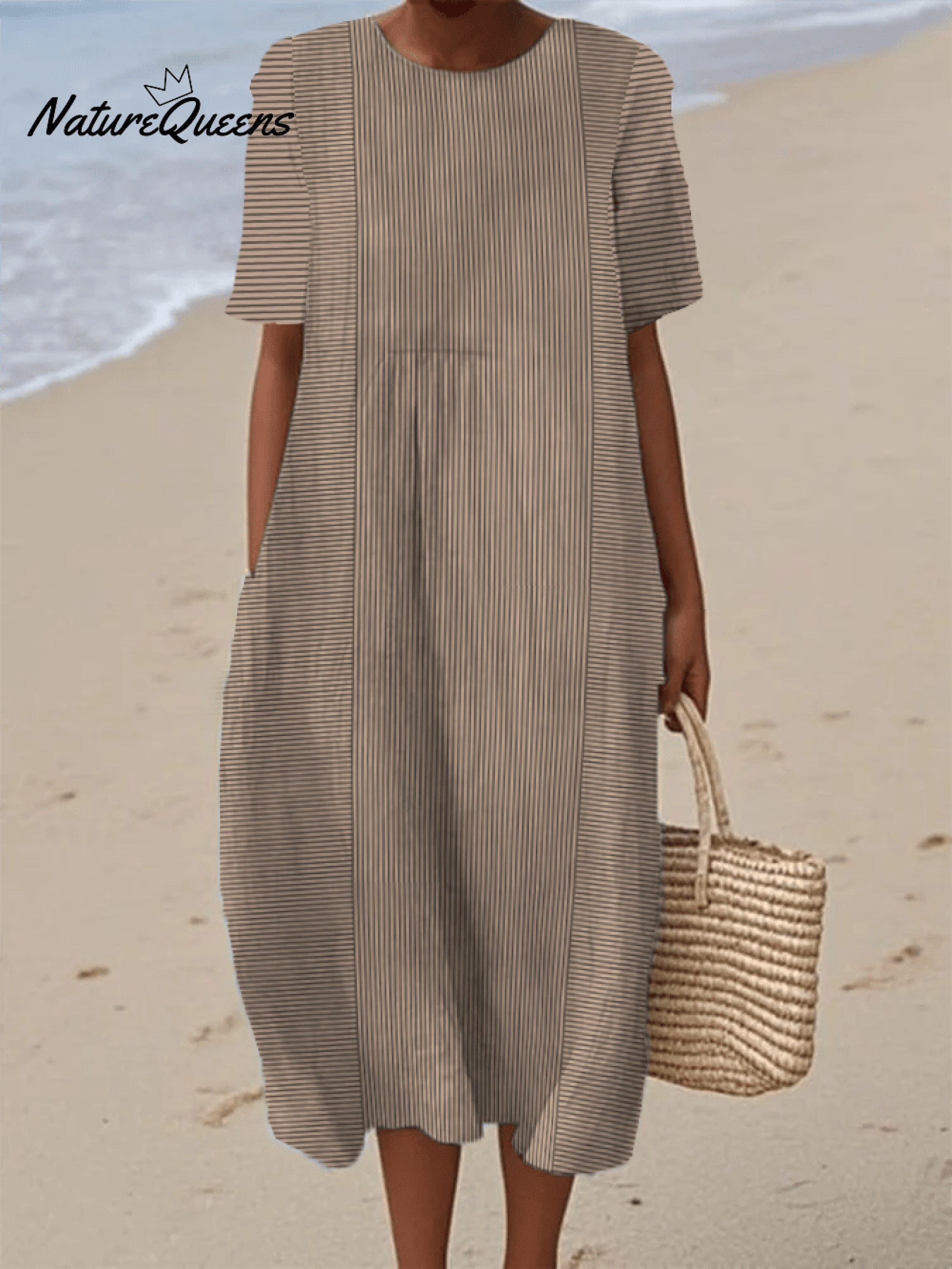 Women's Retro Striped Art Print Casual Round Neck Short Sleeve Dress
