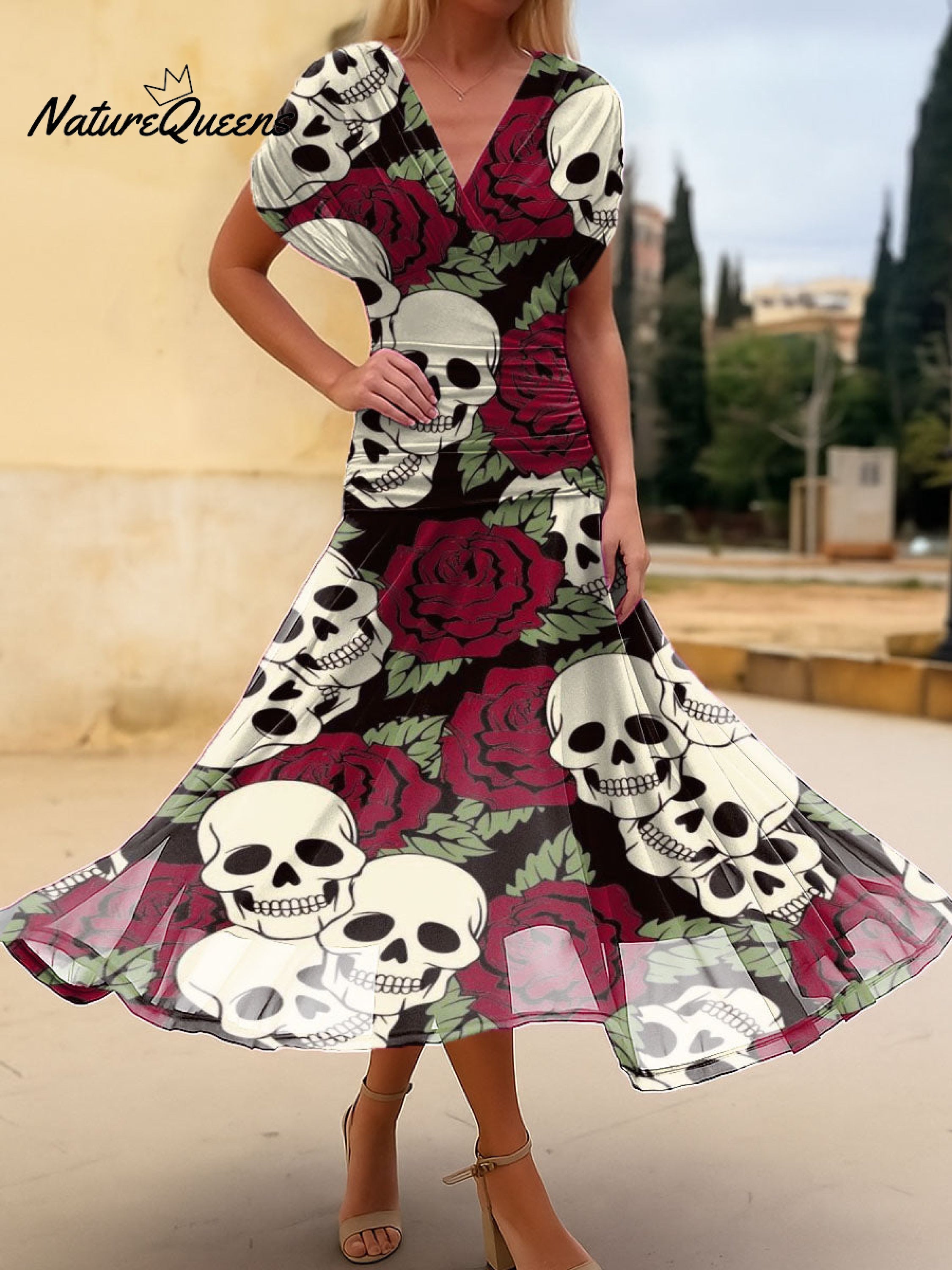 Gender: For WomenStyle: CasualFit Type:FItShirt Length: RegularSleeves Length: Short SleeveCollar: V collarMaterial: 93%Polyester+7%SpandexMaterial Stretch: High StretchPocket :No poctketWeight: 0.500kgPackage: 1 x Dress