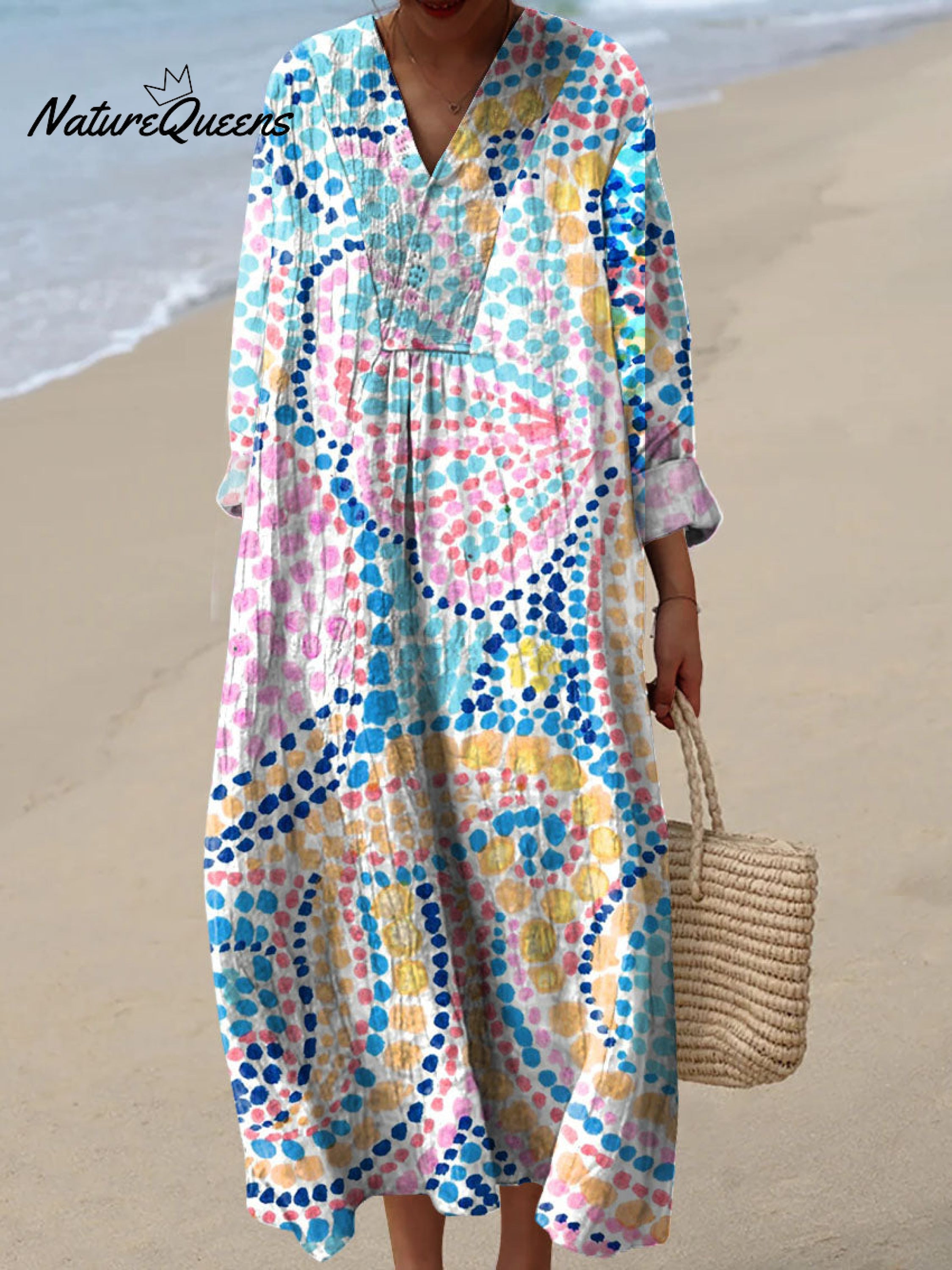 Gender: For WomenStyle: CasualFit Type:FItShirt Length: RegularSleeves Length: Long SleeveCollar: V-CollarMaterial: 70% Cotton +30%linenMaterial Stretch: No StretchPocket :side poctketWeight: 0.300kgPackage: 1 x Dress