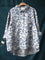 Women's Small Blue Flowers Print Casual Cotton And Linen Shirt