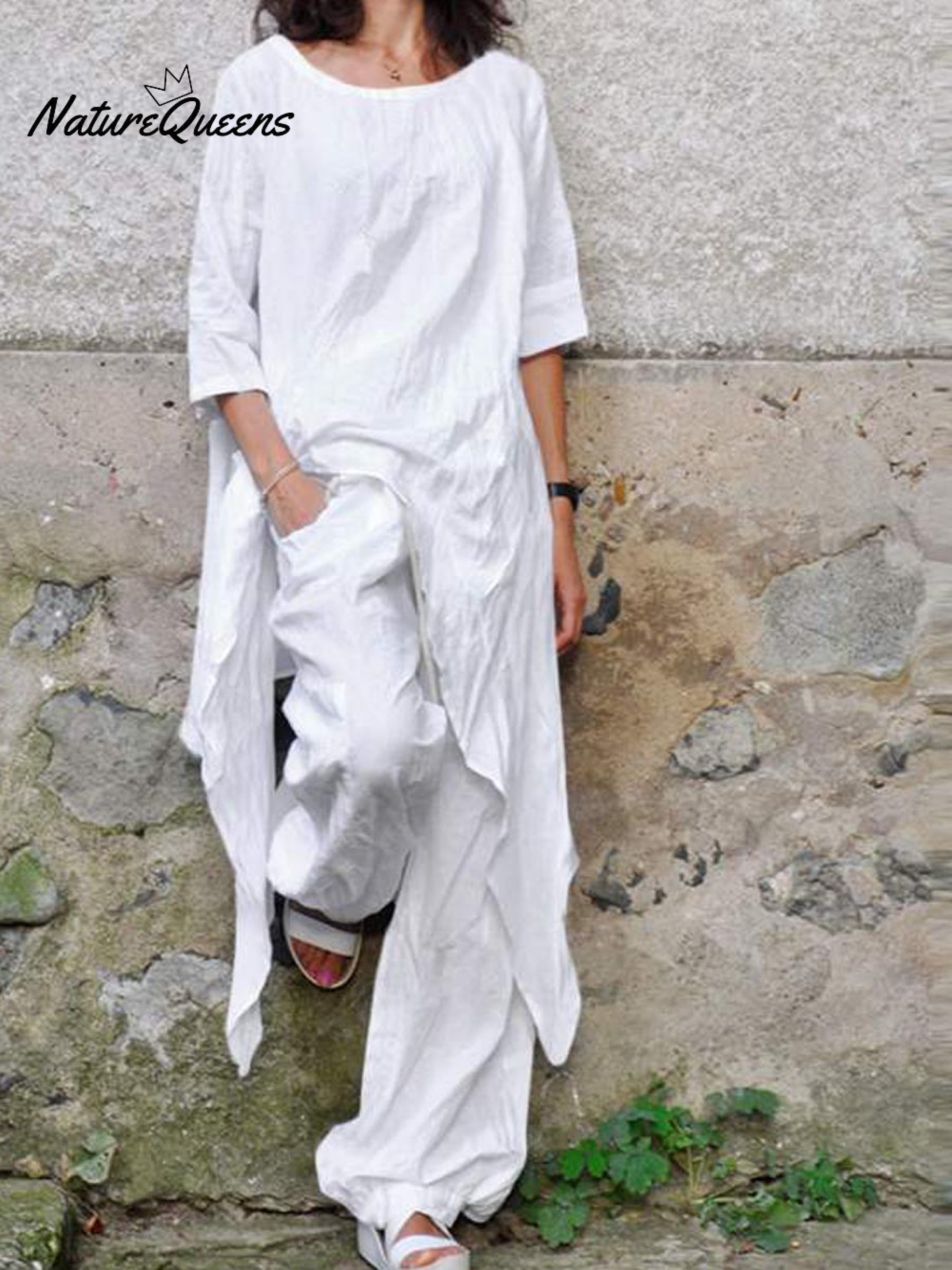 Women's Solid Color Casual Elegant Stylish Irregular hem Skirt Loose Pants Two Piece Suit