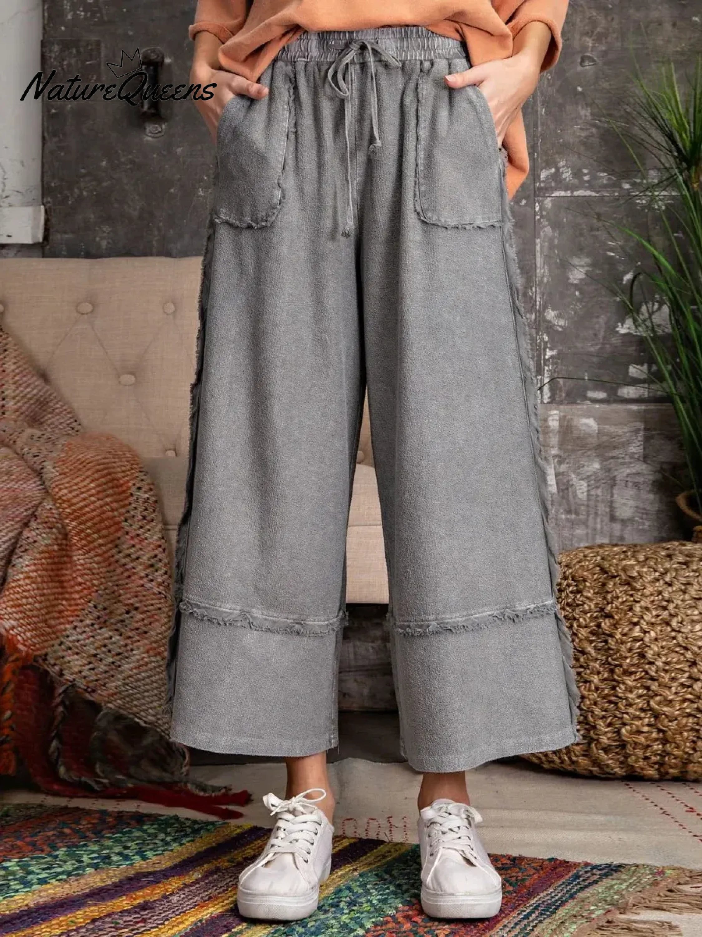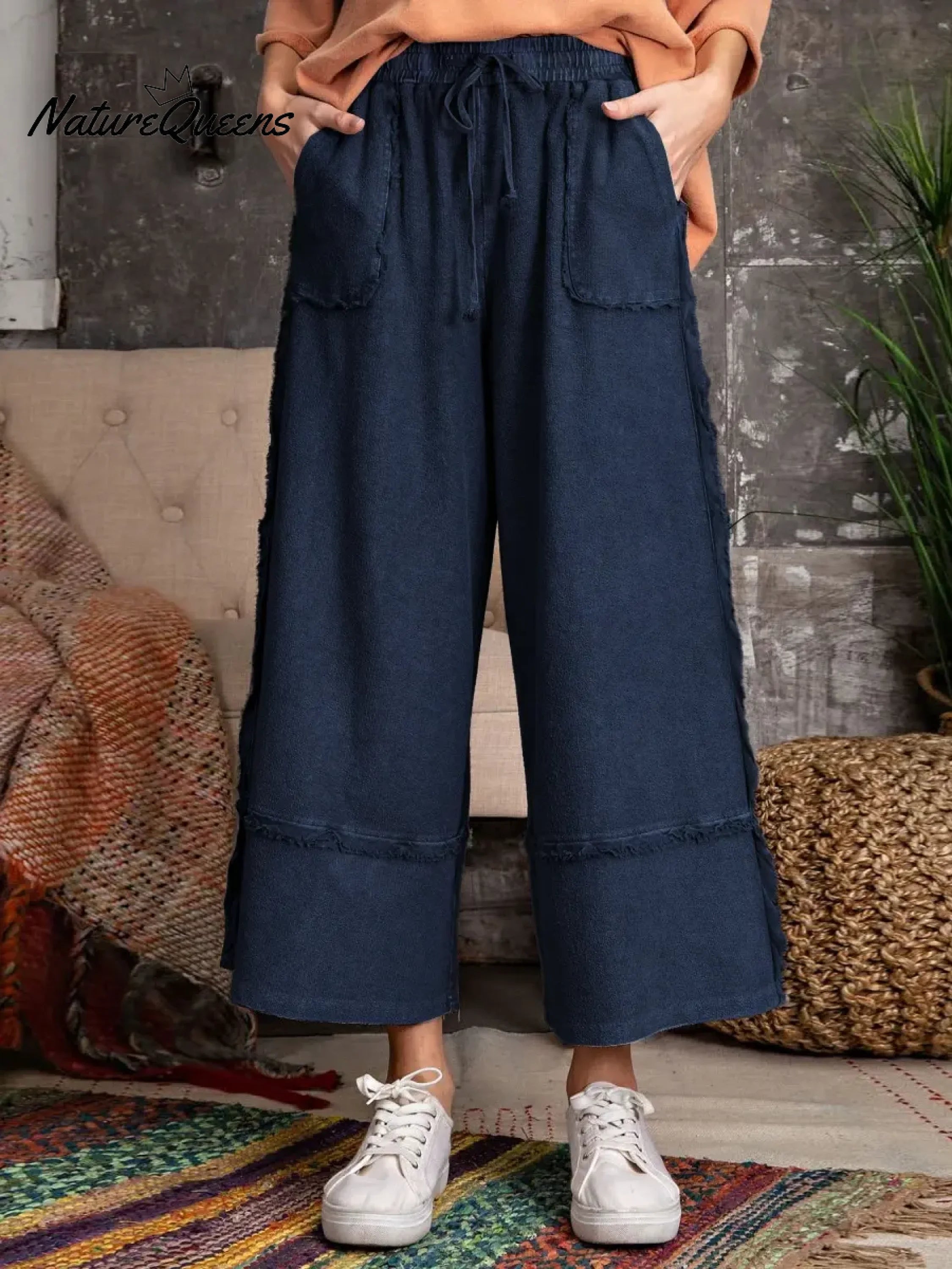 Women's Solid Color Elastic Waist Casual Loose Wide-leg Pants