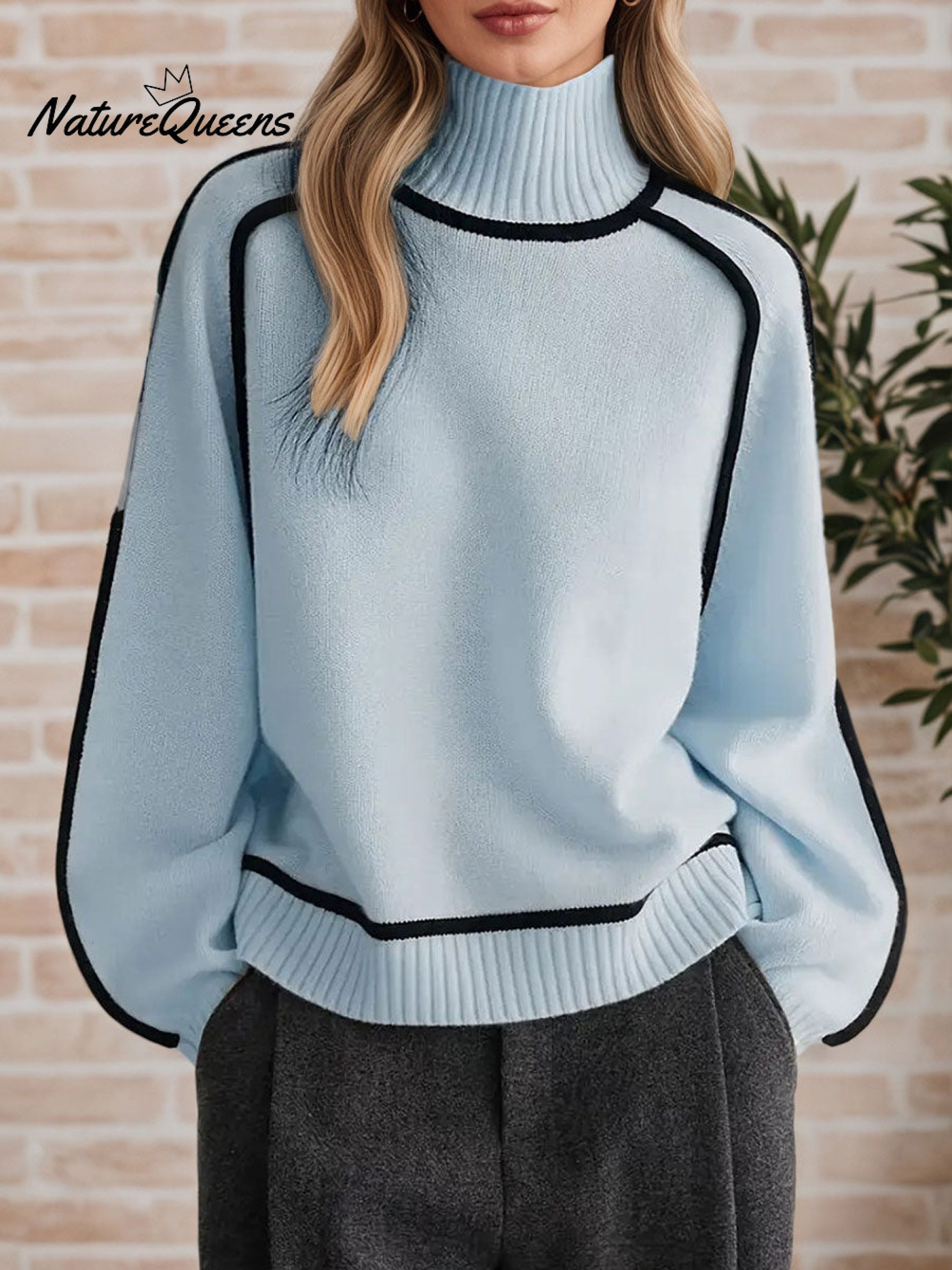 Women's Solid Color High Neck Ribbed Knit Sweater