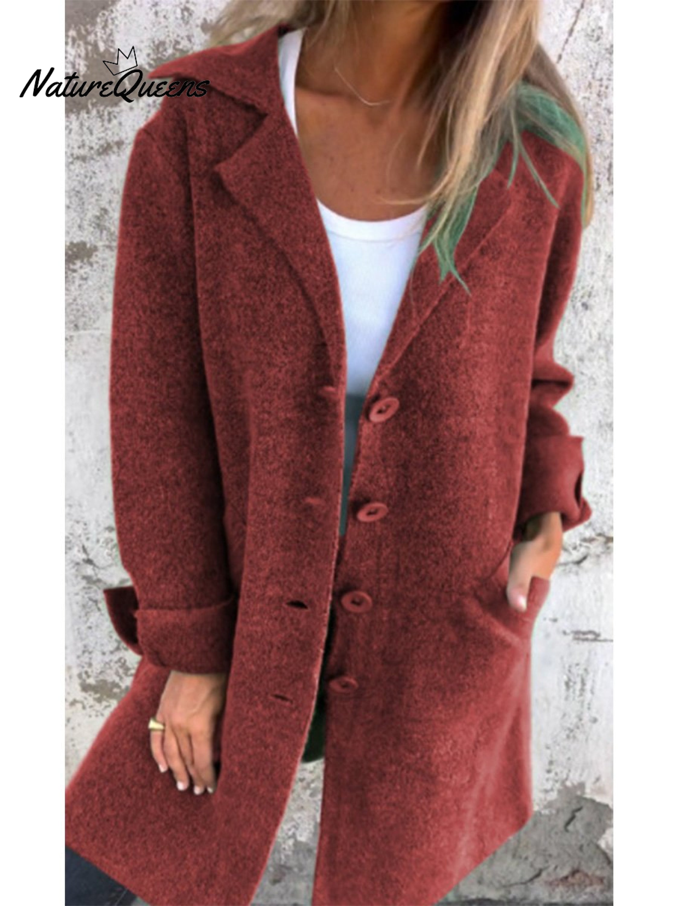 Women's Solid Color Lapel Cardigan with Pockets Single Breasted Mid-Length Jacket