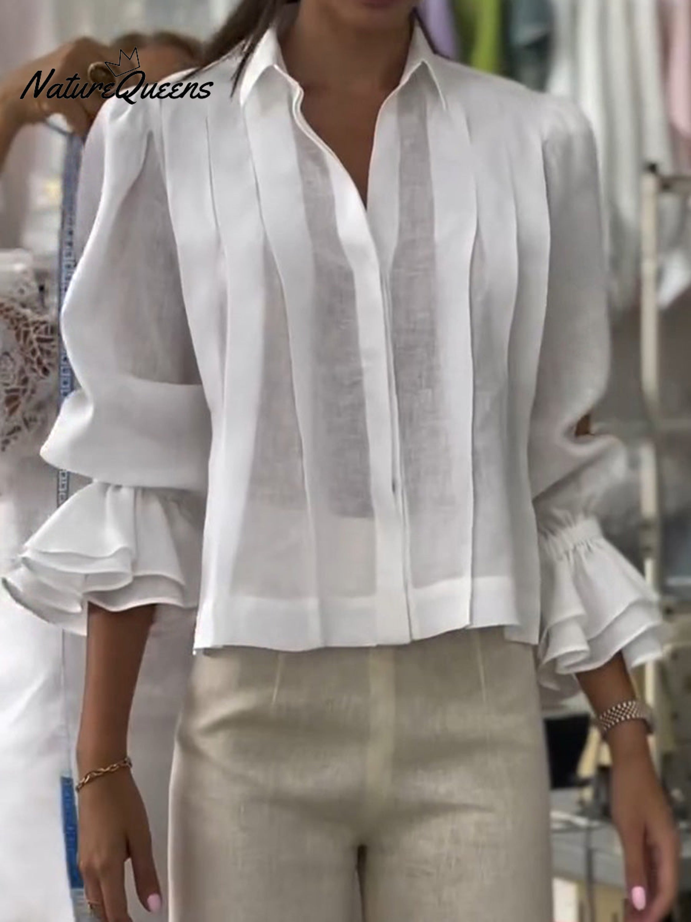 Women's Solid Color Lapel Long Sleeve Casual Loose Linen Cardigan Top
