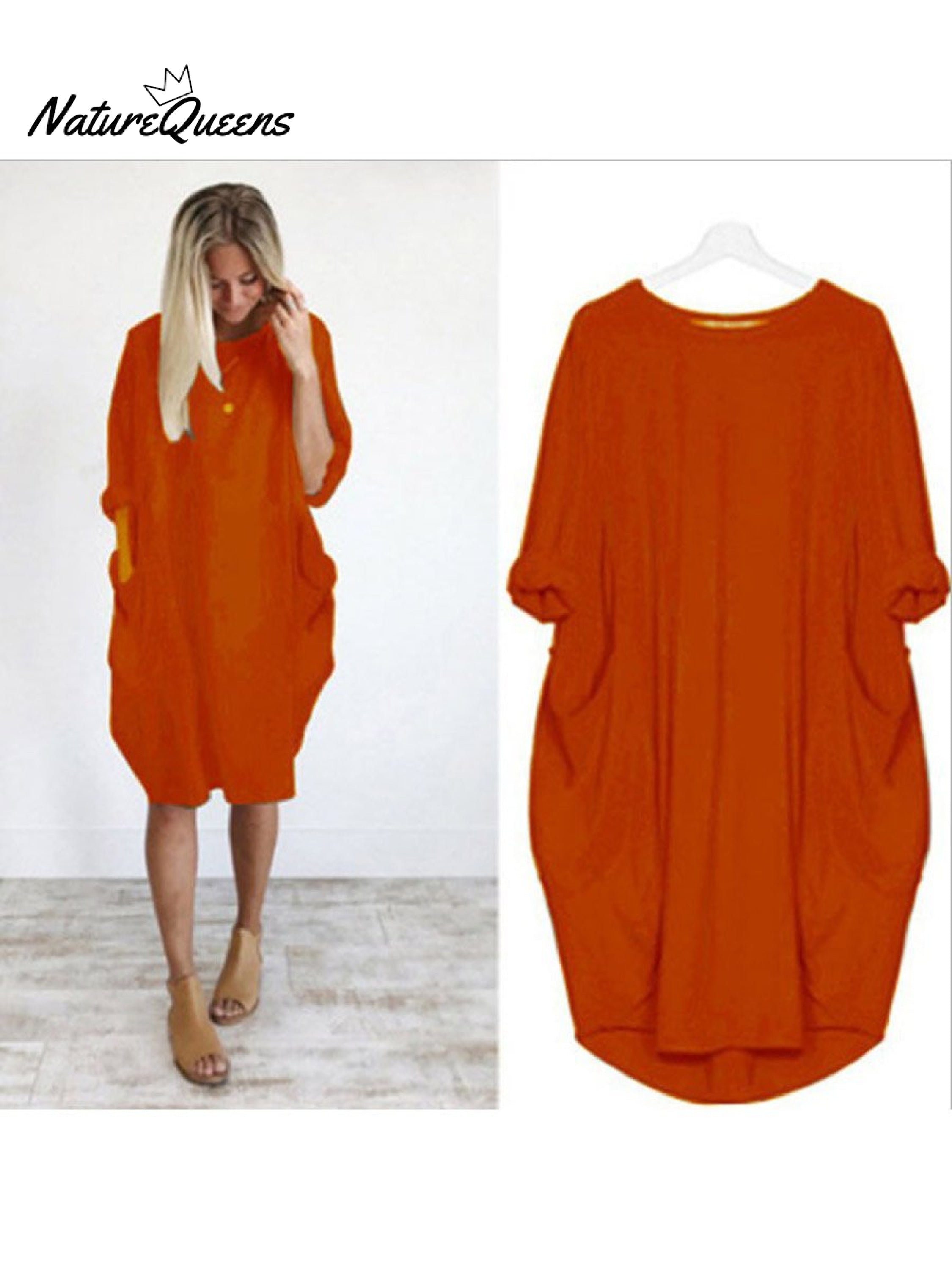 Women's Solid Color Loose Elegant Casual Long-sleeved Pocket Dress