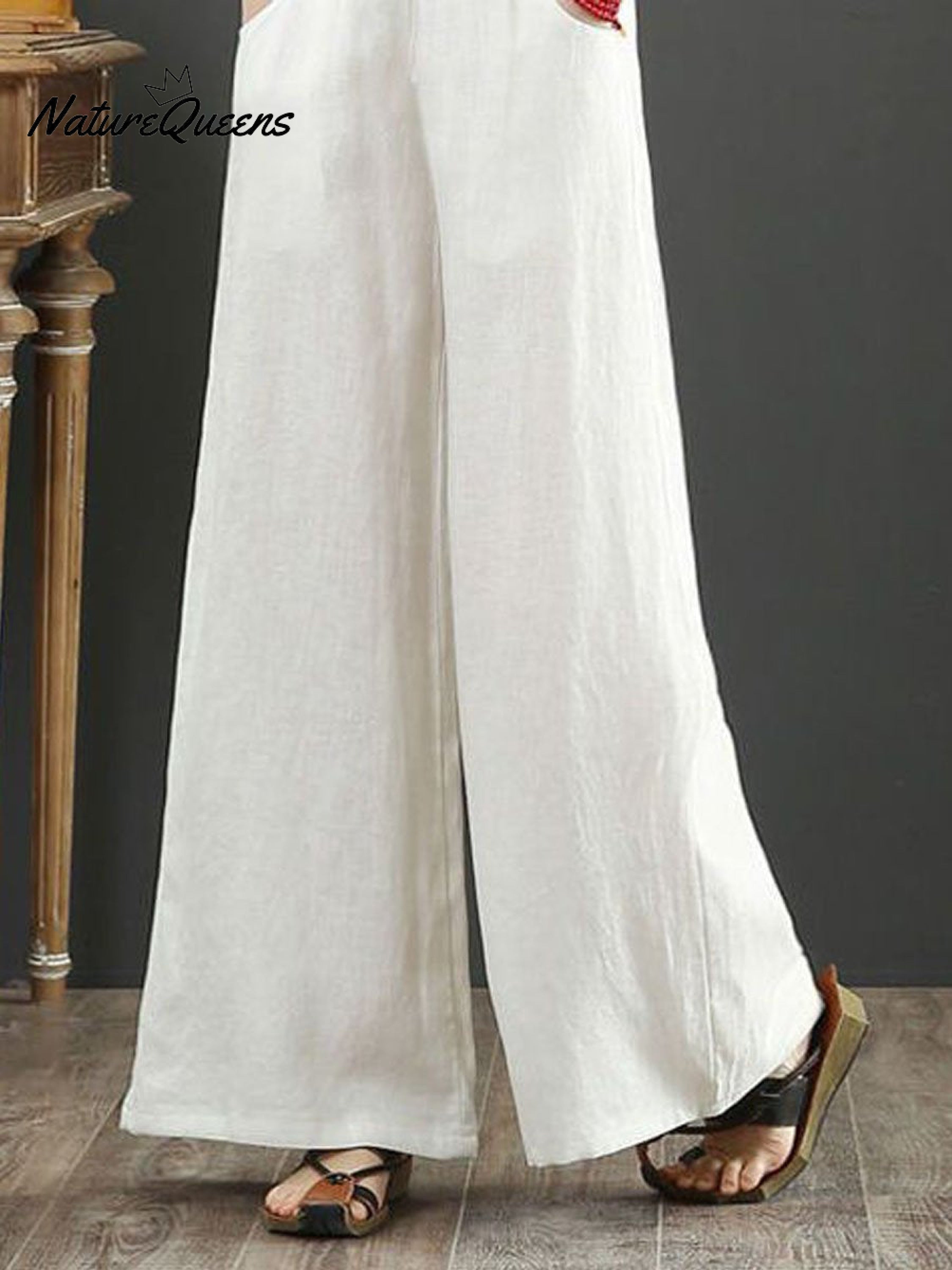 Women's Solid Color Loose Elegant Casual Simple Cotton And Linen Pants