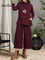 Women's Solid Color Stand-collar Long-sleeved Casual Loose Cotton Top And High-waisted Loose Wide-leg Pants Set.