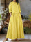 Women's Solid Color Stand-collar Long-sleeved Loose-fitting A-line Cotton Dress