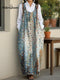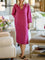 Women's Solid Color V-neck Long-sleeved Casual Loose Cotton And Linen Dress