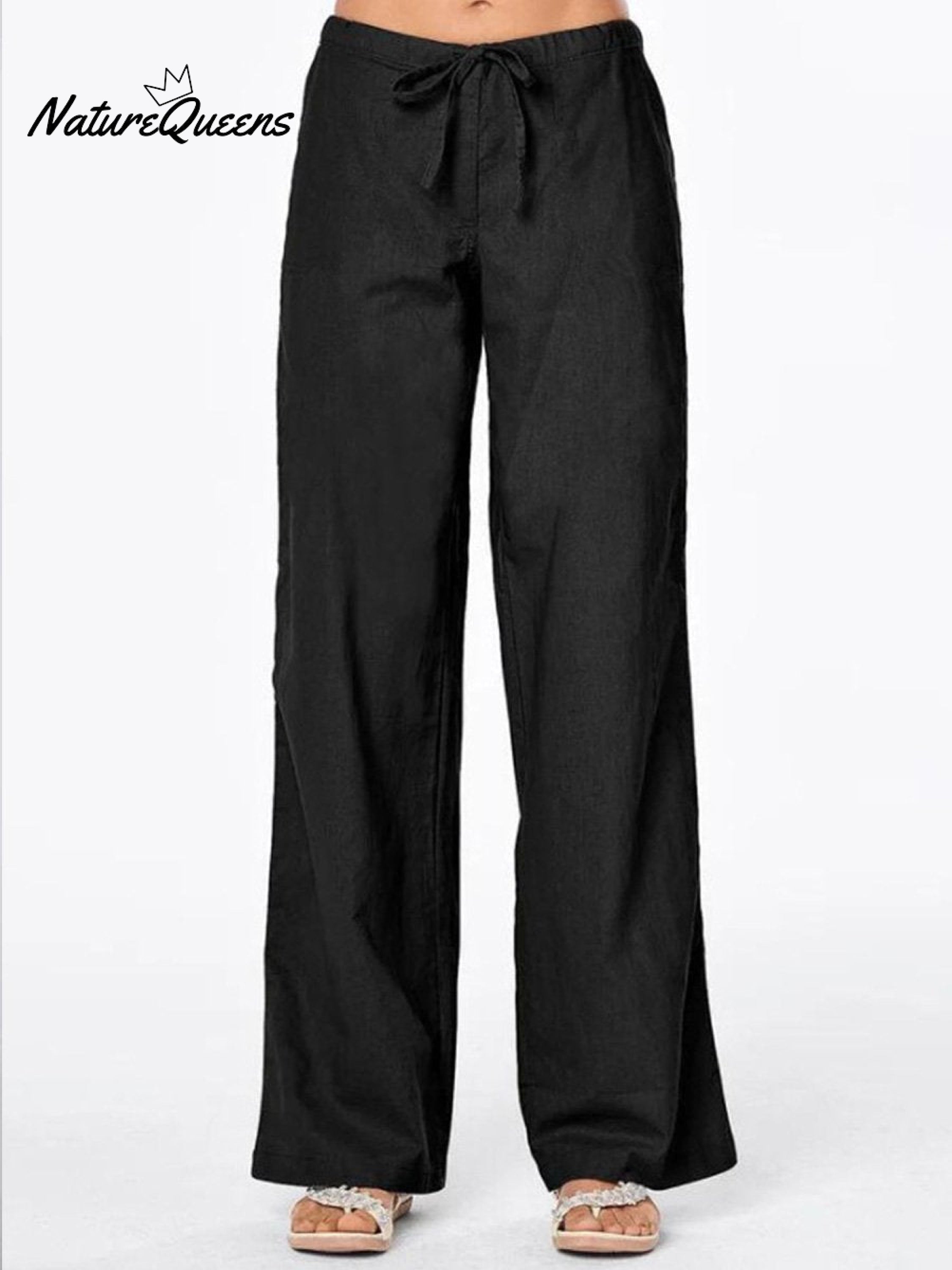 Women's Solid Colour Tie Casual Wide Leg Linen Pants