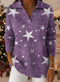 Women's Striped Print Shirt Collar Short Sleeve Casual Loose Cotton Linen Top