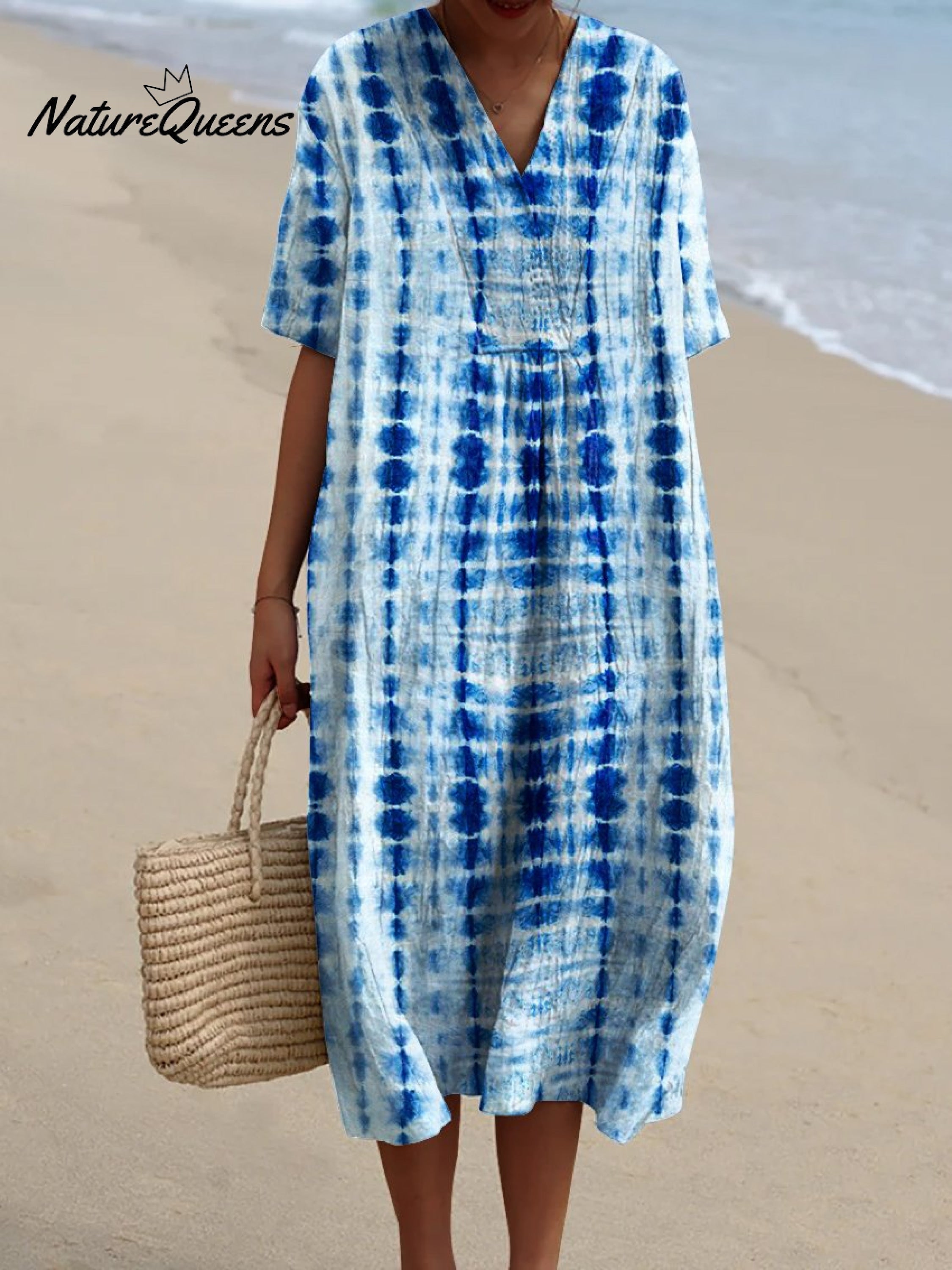 Gender: For WomenStyle: CasualFit Type:FItShirt Length: RegularSleeves Length: Short SleeveCollar: V-CollarMaterial: 100% CottonMaterial Stretch: Slight StretchPocket :side poctketWeight: 0.300kgPackage: 1 x Dress