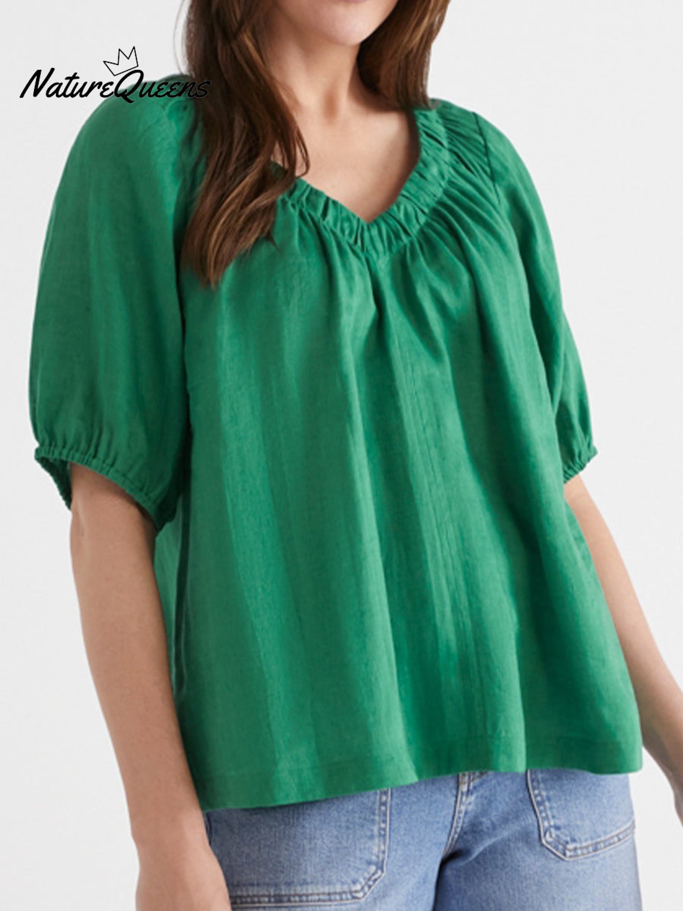 Women's V Neck Casual Cotton And Linen ShirtWomen's V Neck Casual Cotton And Linen Shirt