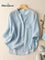 Women's V-neck Solid Color 3/4 Sleeve Casual Linen Cardigan Shirt