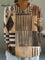 Women's Vintage Abstract Geometric Art Print Casual Cotton And Linen 3/4 Sleeve Shirt