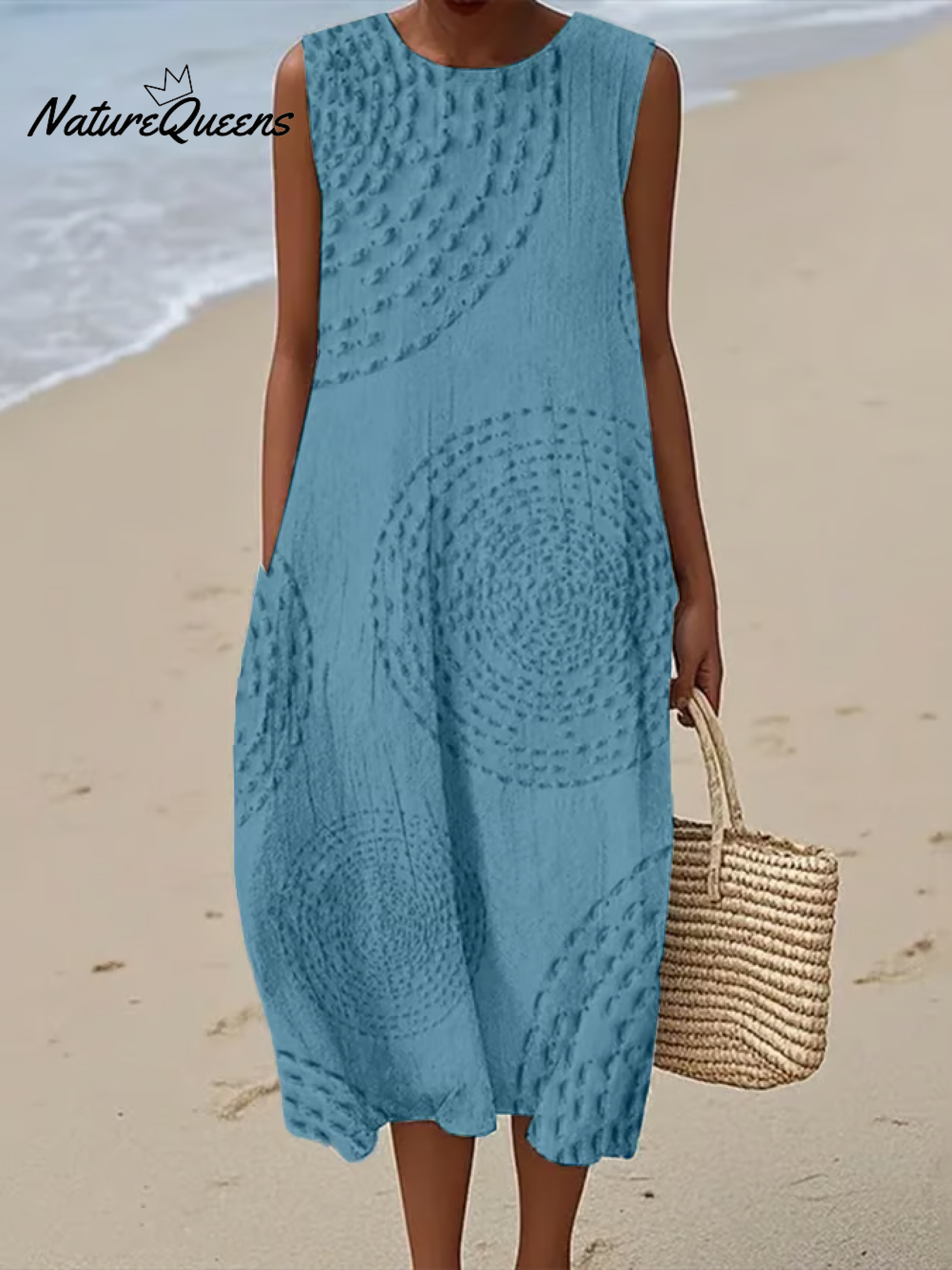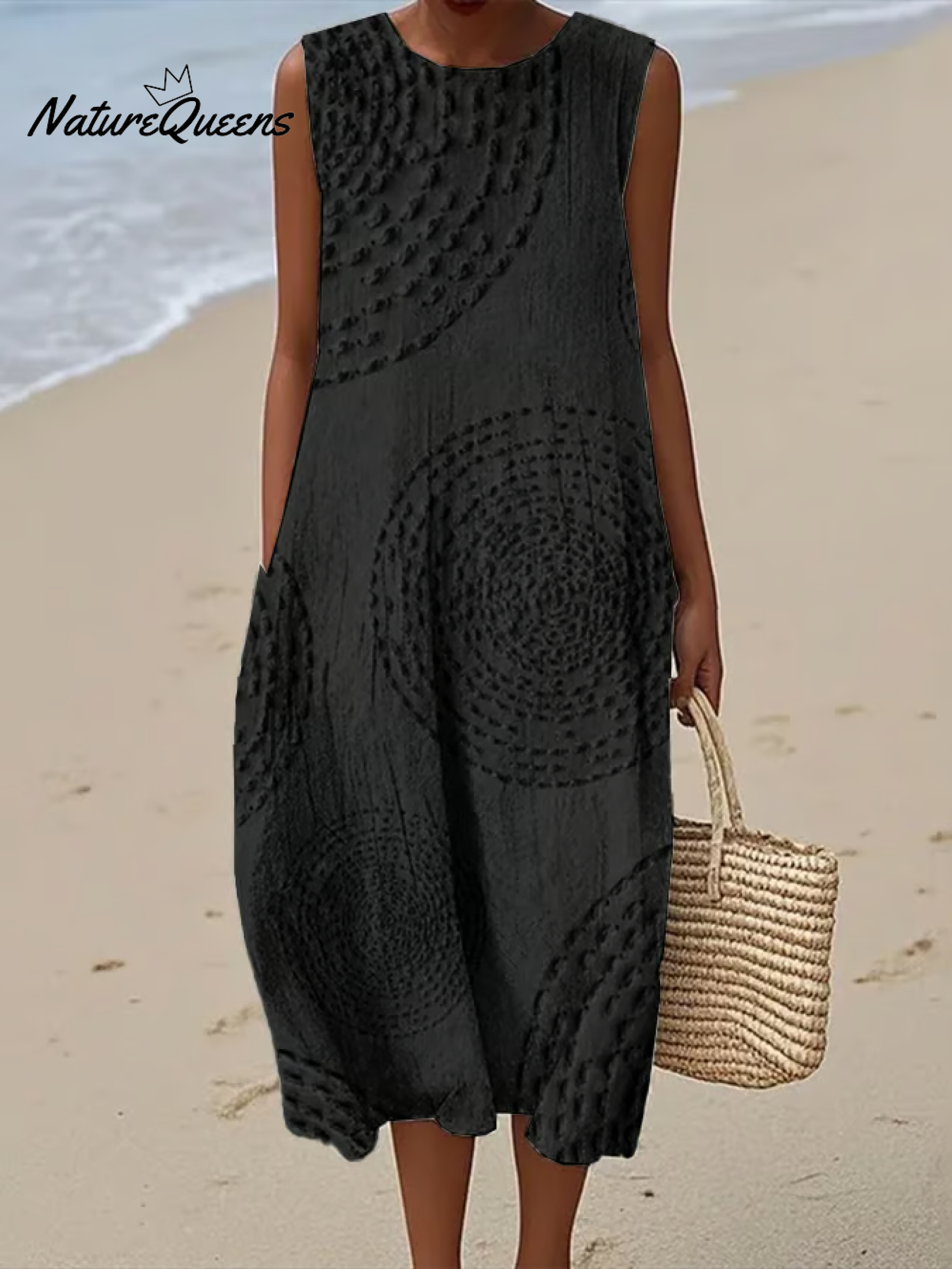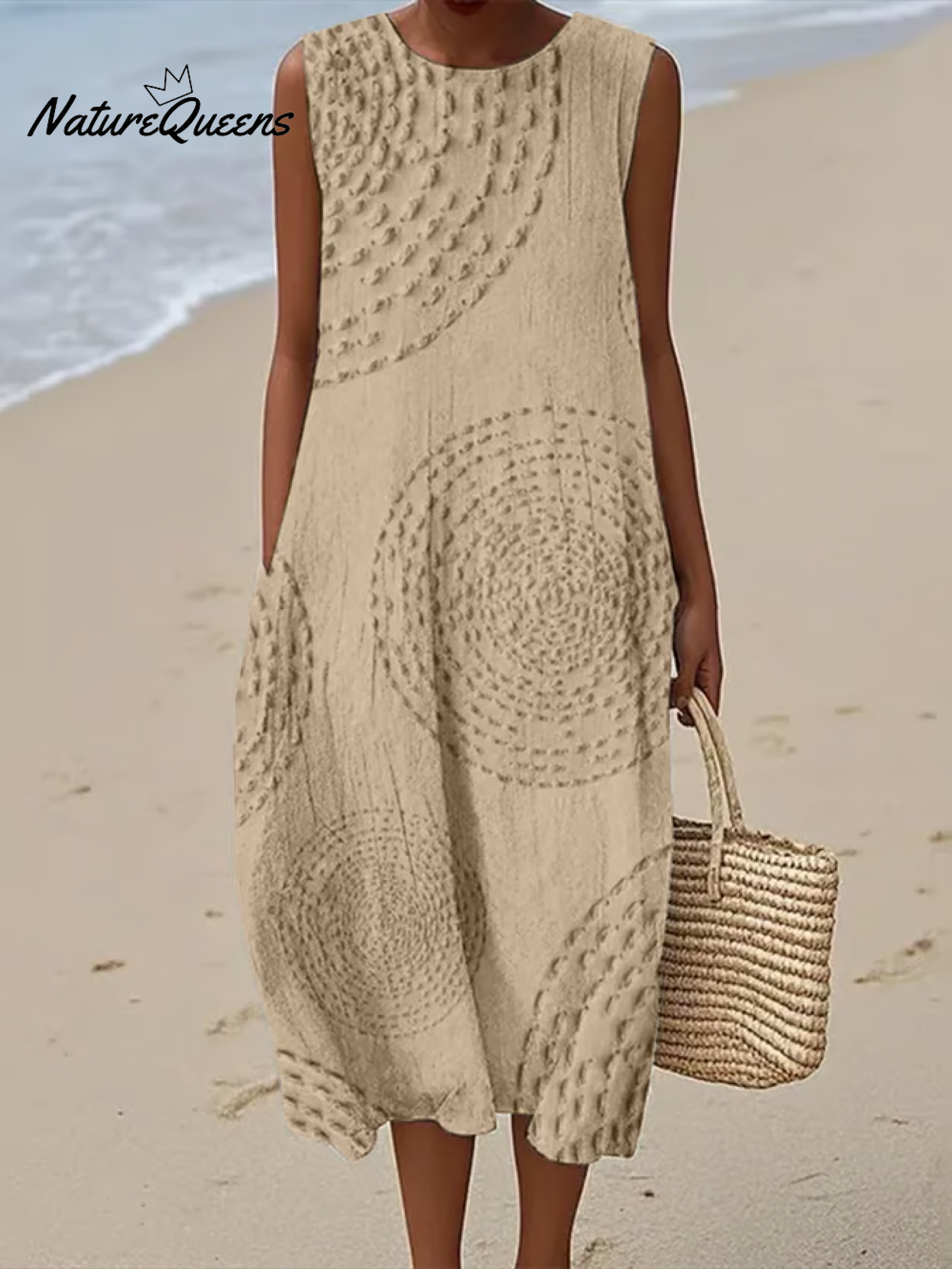 Women's Vintage Abstract Geometric Art PrintSleeveless Cotton Pocket Wrap Dress