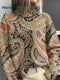 Women's Vintage Abstract Geometric Line Art Print Casual Linen V-neck Shirt