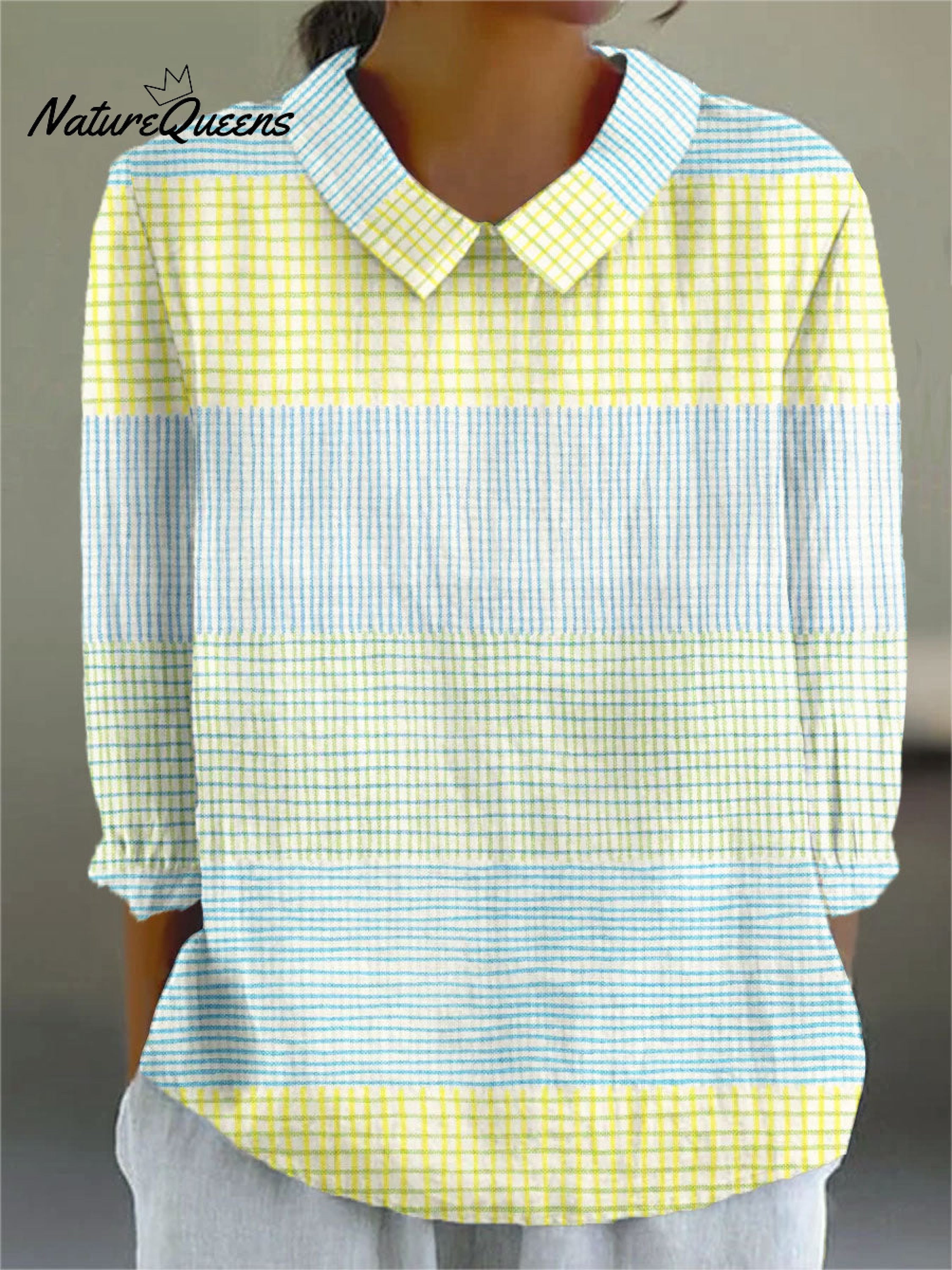 Women's Vintage Abstract Geometric Lines Art Print Casual Cotton And Linen 3/4 Sleeve Shirt