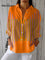 Women'sVintage Abstract Geometry Art Print Casual Linen V-neck Shirt