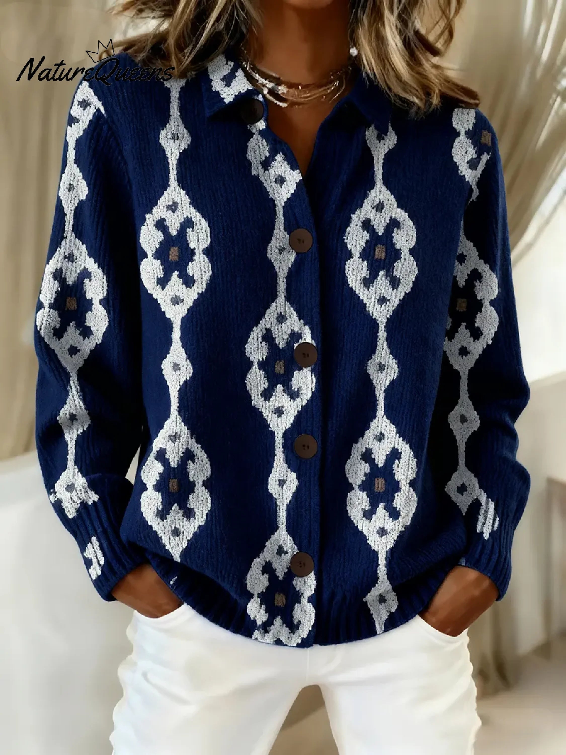 Women's Vintage Abstract Geometry Art Print Casual Sweater