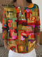 Women's Vintage Abstract GeometryArt Print Linen Pocket Tunic Dress