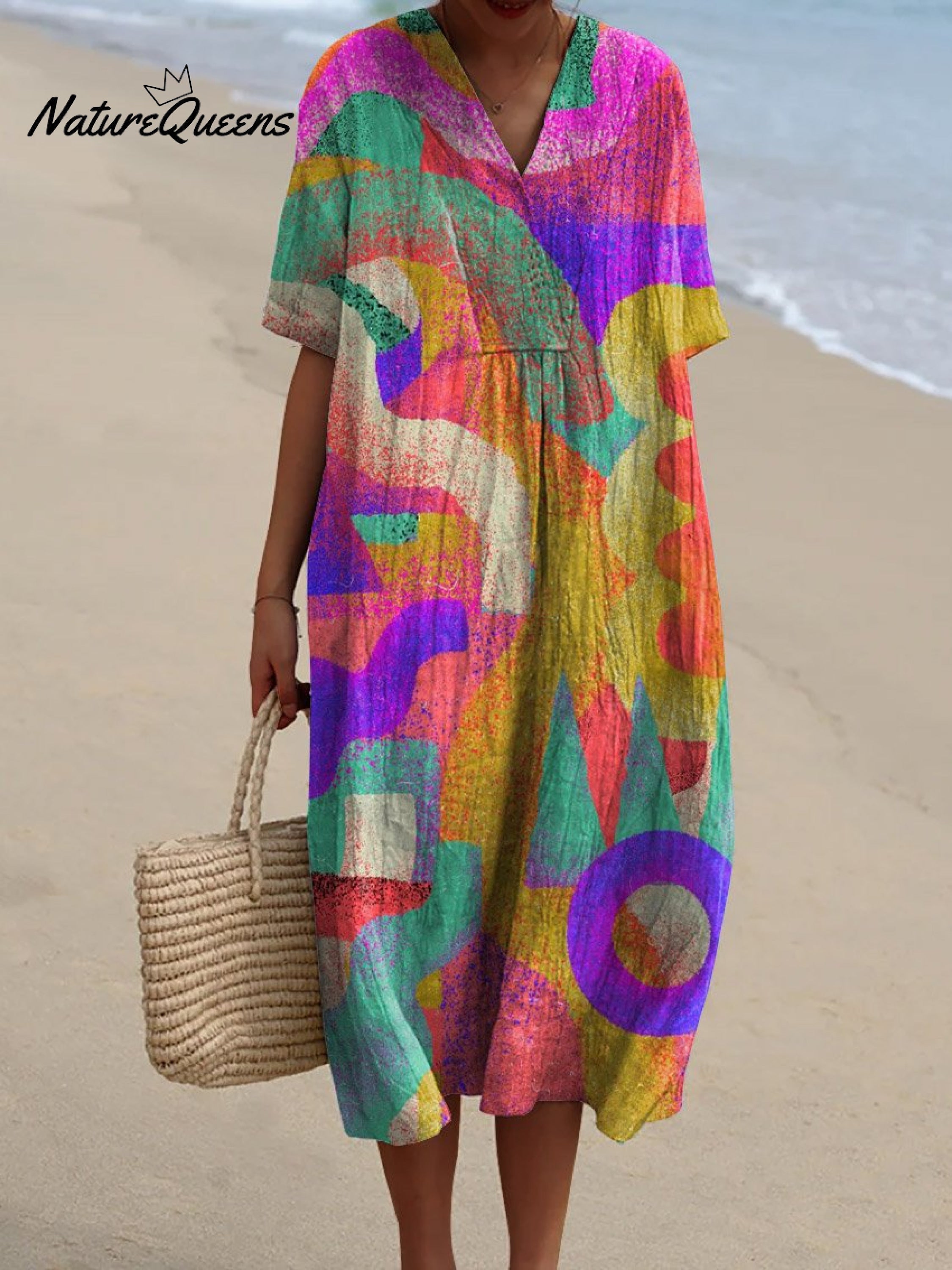Women's Vintage Abstract Painting Art Print Flowy Dress