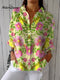 Women'sVintage Aged Rust Print Casual Linen V-neck Shirt