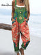 Women's Vintage Art Flower Print Casual Cotton And Linen Shirt