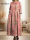 Women's Vintage Blue Butterfly Pattern Art Print Casual Cotton Denim Dress