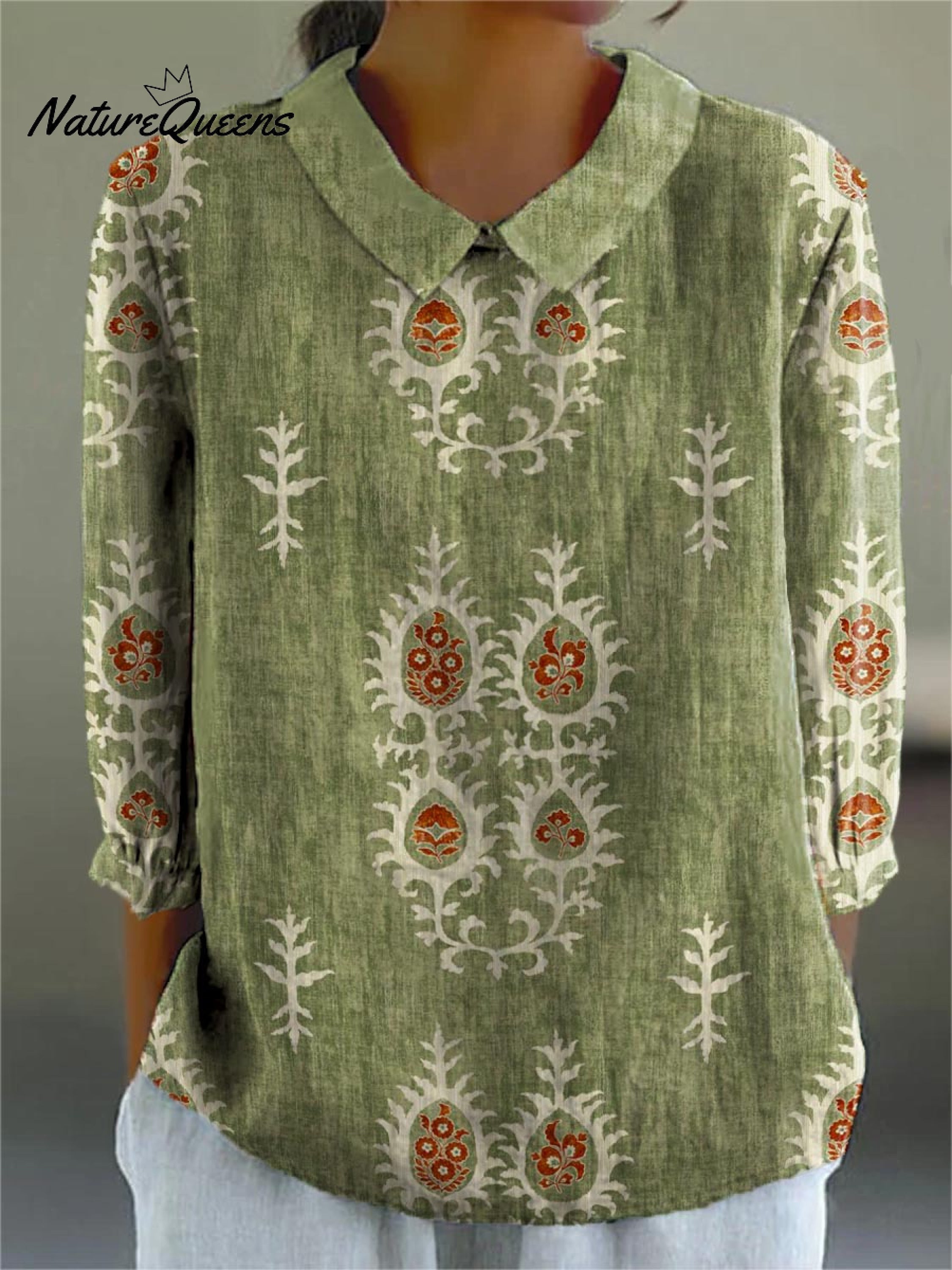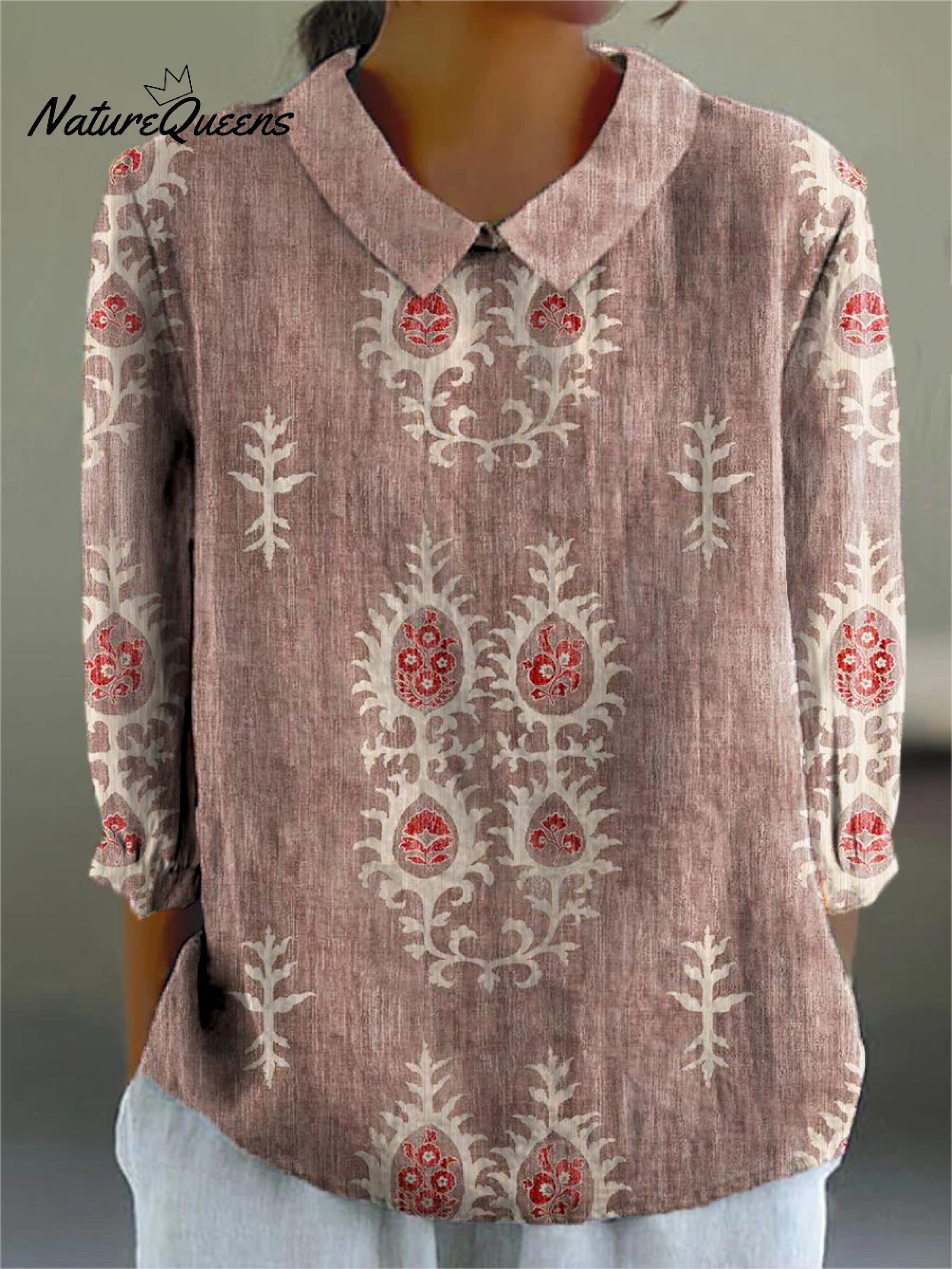 Women's Vintage Ethnic Pattern Art Print Casual Cotton And Linen 3/4 Sleeve Shirt