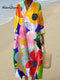 Women's Vintage Flower Art Print Casual Cotton And Linen Ruffle Shirt