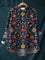 Women's Vintage Flower Art Print Casual Cotton And Linen Shirt