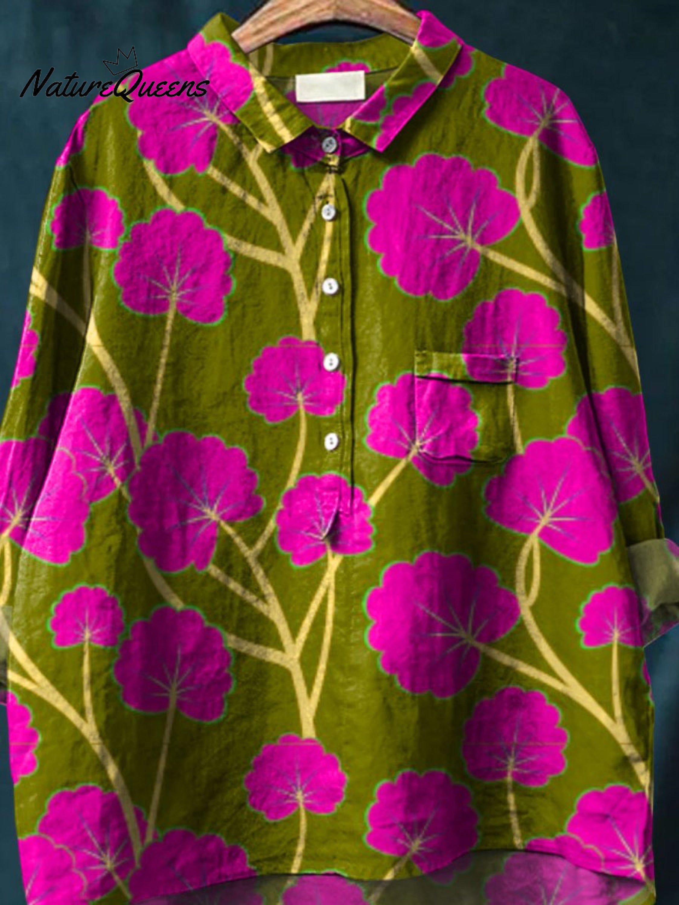 Women's Vintage Flower Art Print Casual Cotton And Linen Shirt