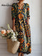 Women's Vintage Flower Art Print Casual Cotton Knitted Suits