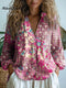 Women's Vintage Flower Art Print Casual Cotton Shirt