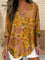 Women's Vintage Flower Art Print Casual Linen V-neck Shirt