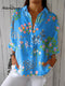 Women's Vintage Flower Art Print Casual Linen V-neck Shirt