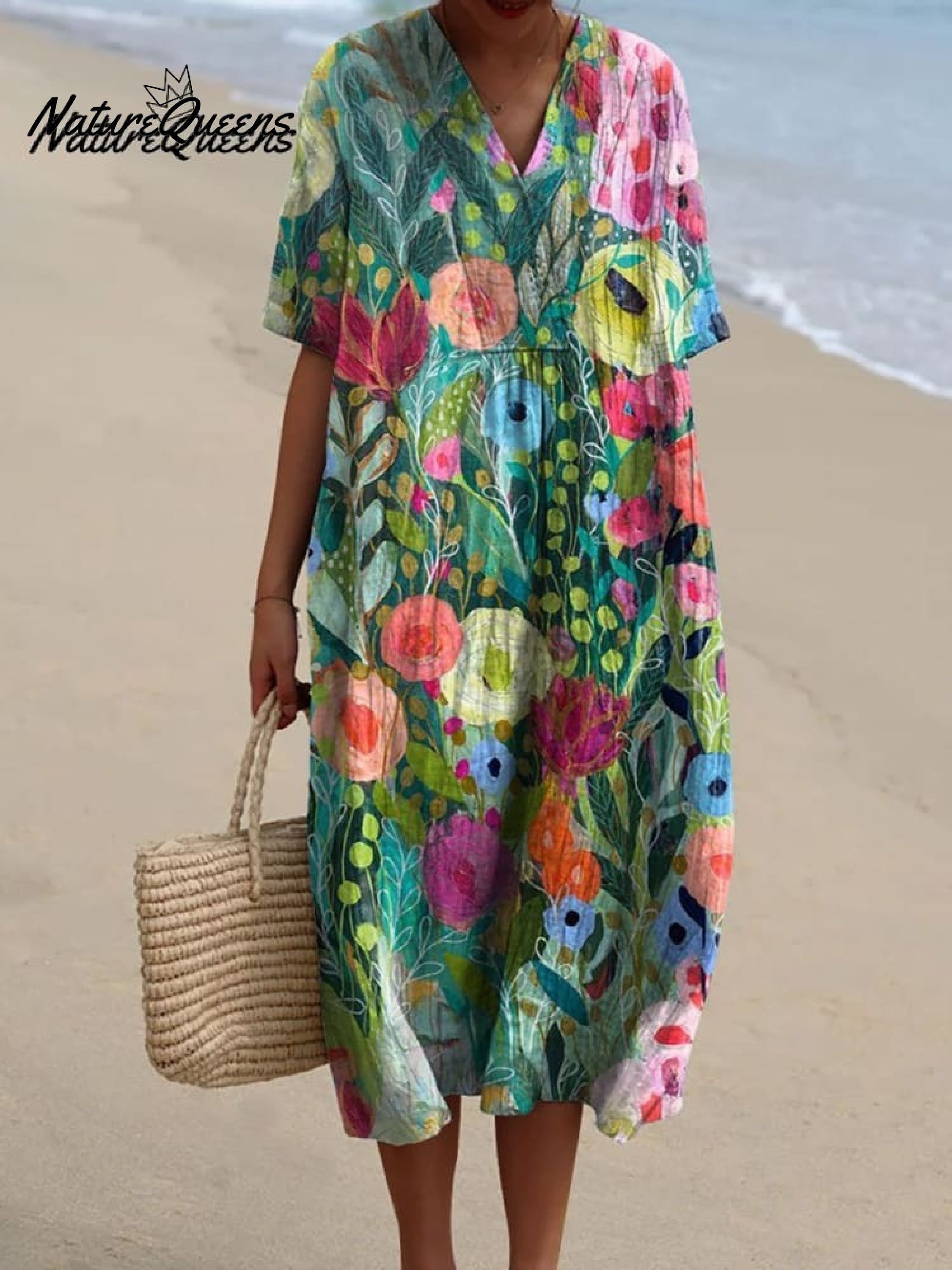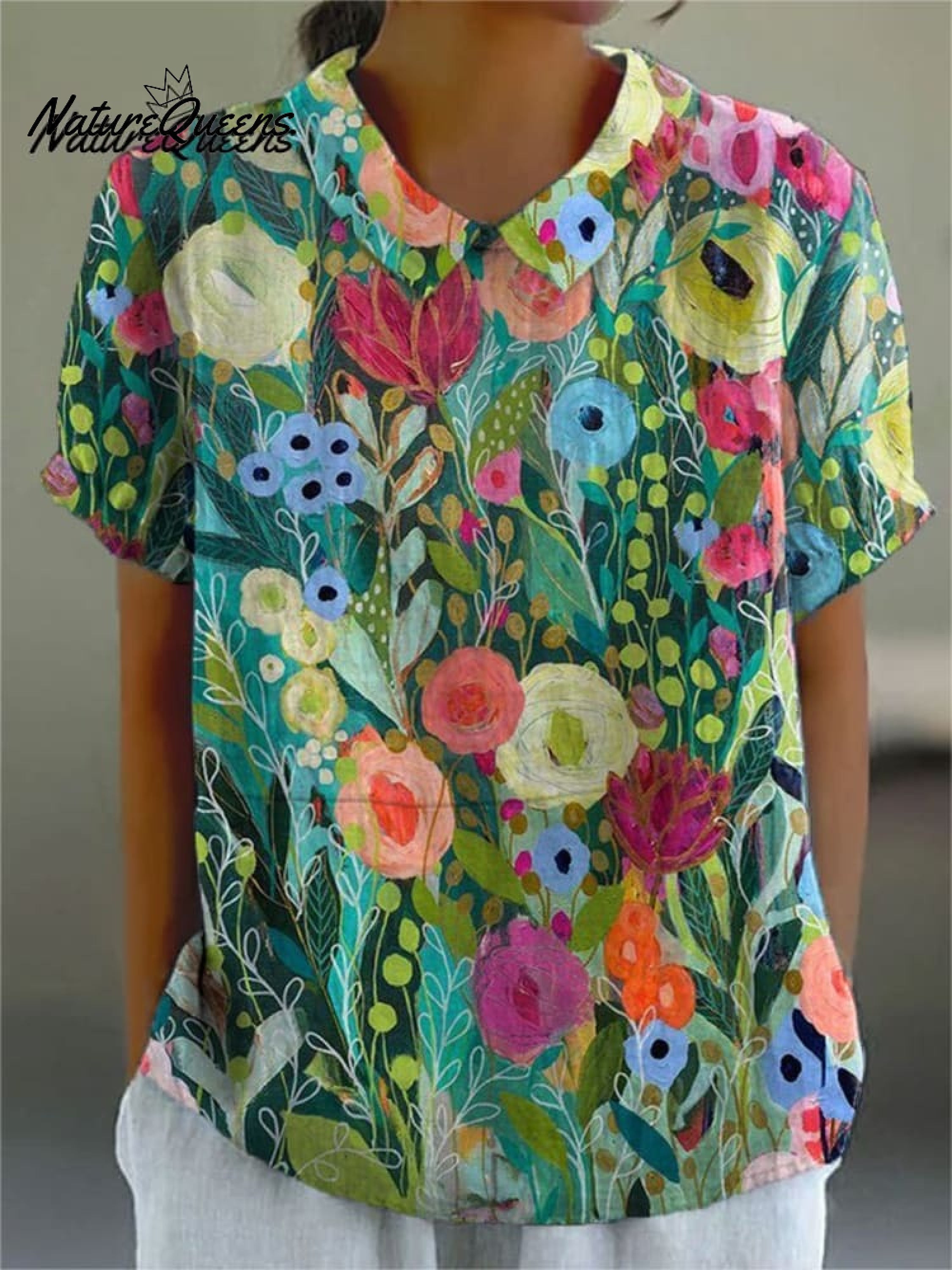 Women's Vintage Flower Casual Cotton Linen Shirt