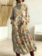 Women's Vintage Flower Pattern Art Print Buttoned Cardigan Sweater