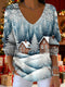 Women's Vintage Flower Pattern Art Print Casual Cotton Denim Dress