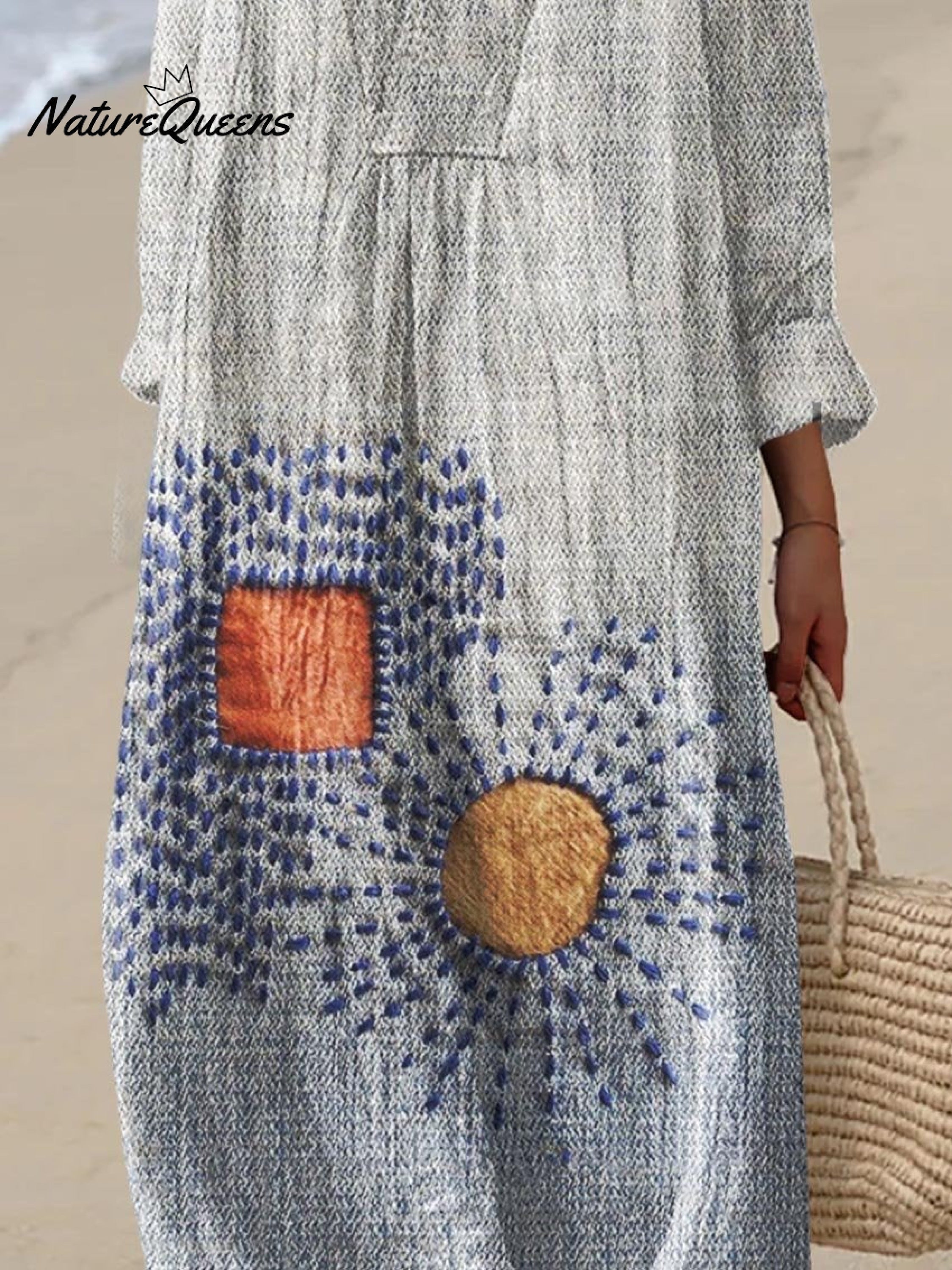 Women's Vintage Flower Pattern Splicing Art Print Dress