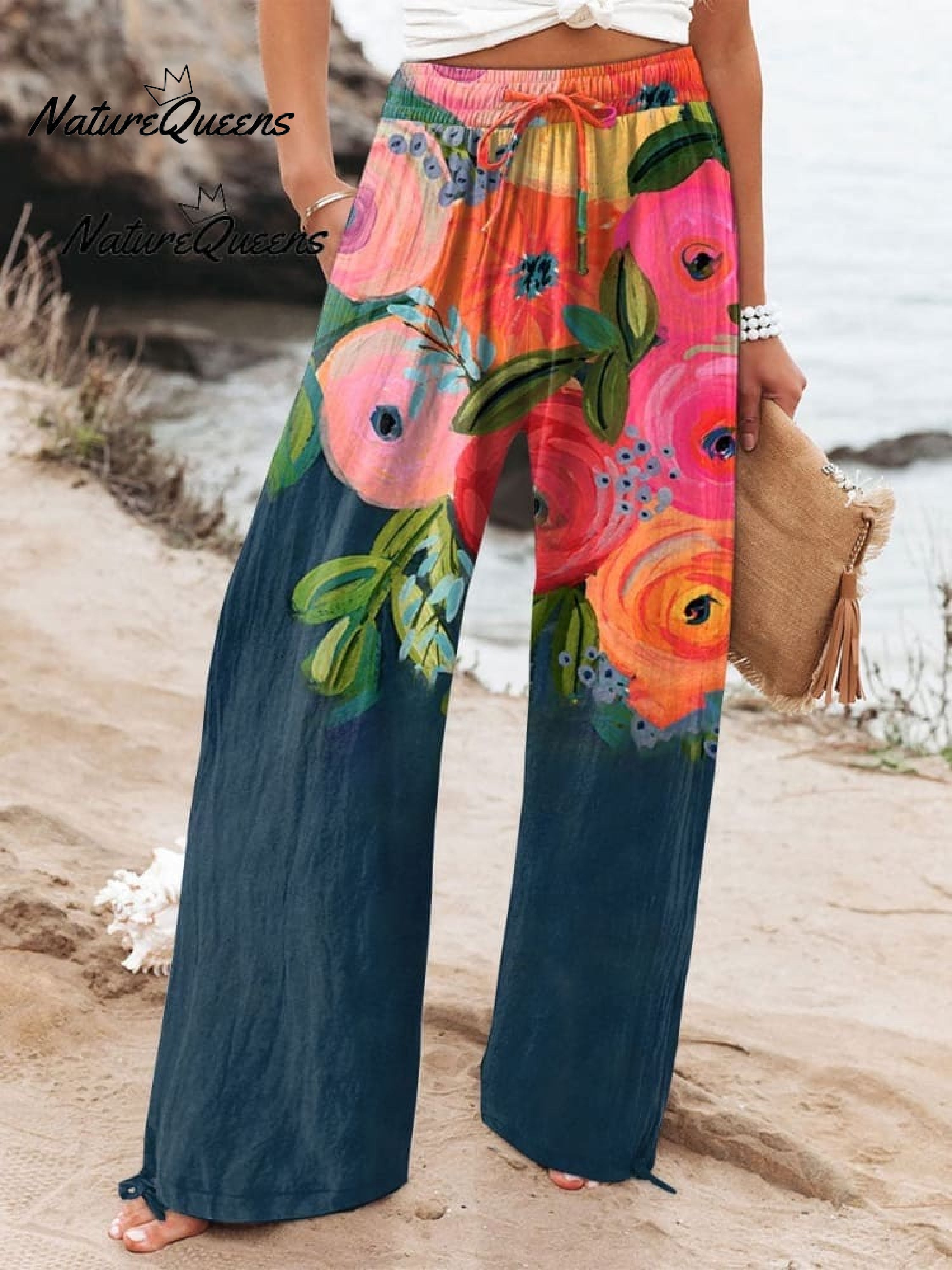 Women'sVintage Flowers Art Print Casual Linen V-neck Shirt