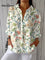Women's Vintage Flowers Art Print Casual Linen V-neck Shirt