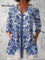 Women's Vintage Flowers Art Print Casual Linen V-neck Shirt