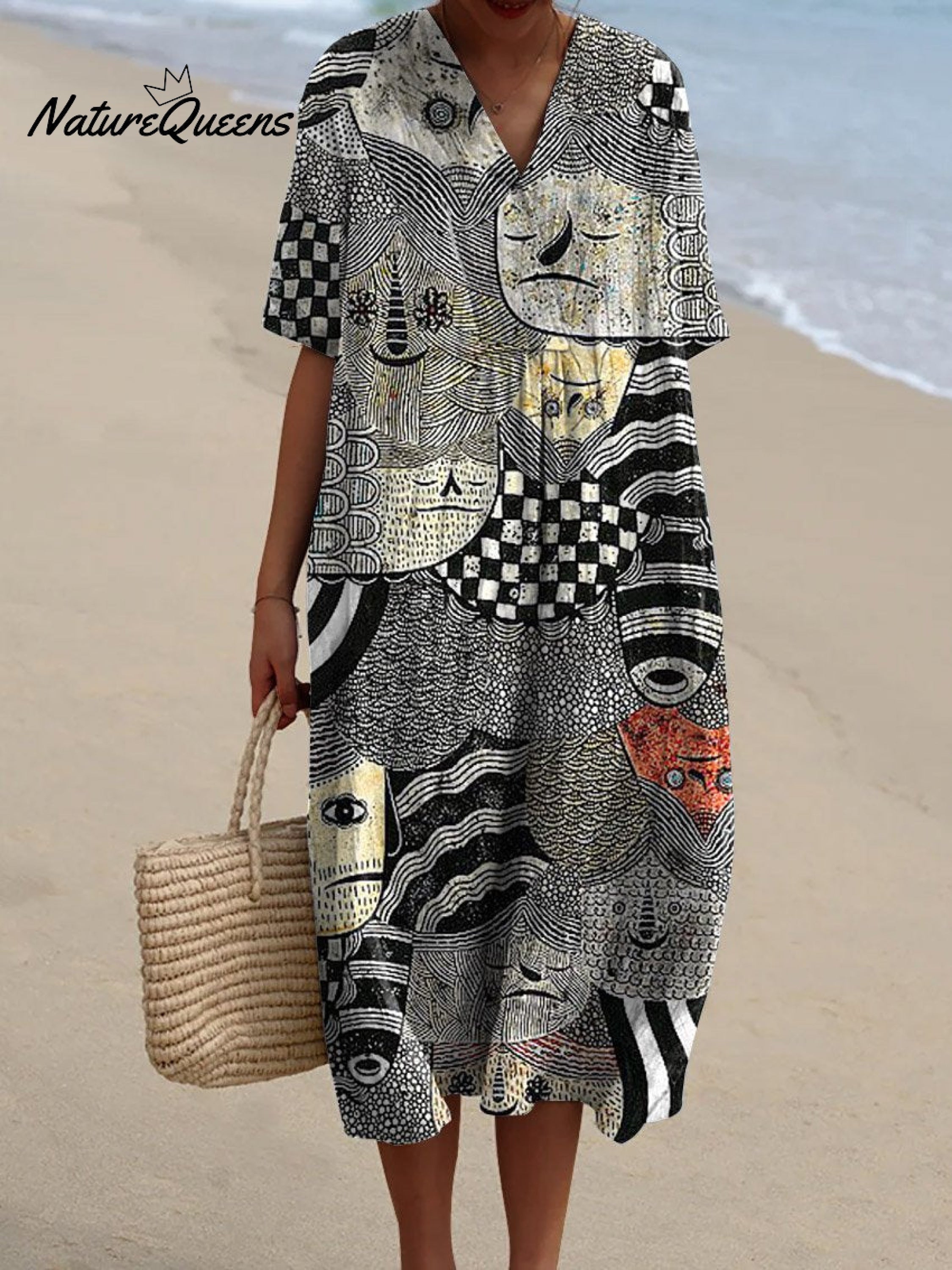 Women's Vintage Funny Abstract Figure Art Print Flowy Dress