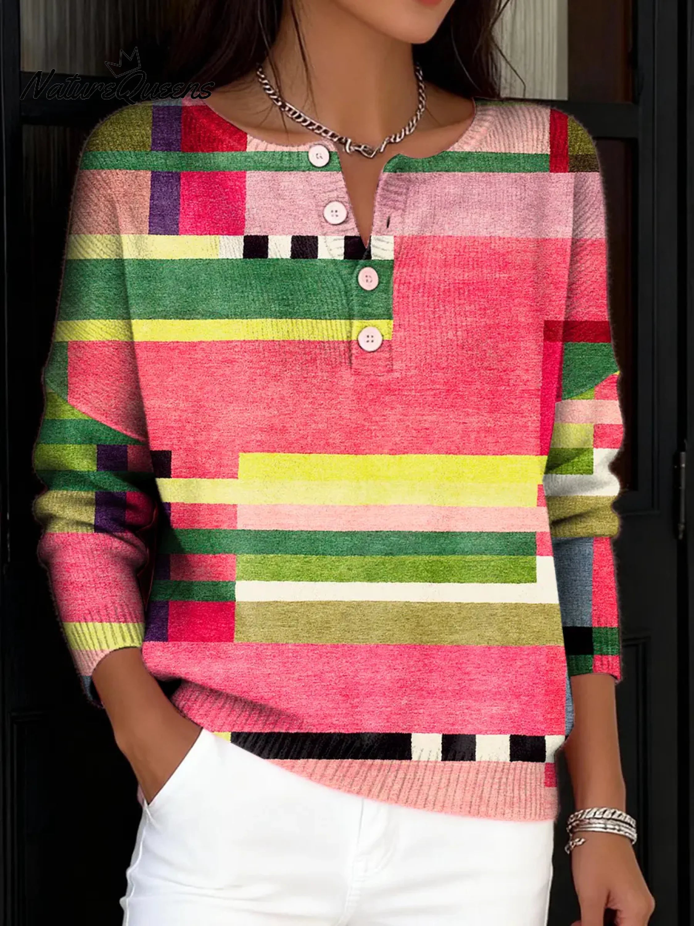 Women's Vintage Geometric Pattern Art Print Buttoned Cardigan Sweater
