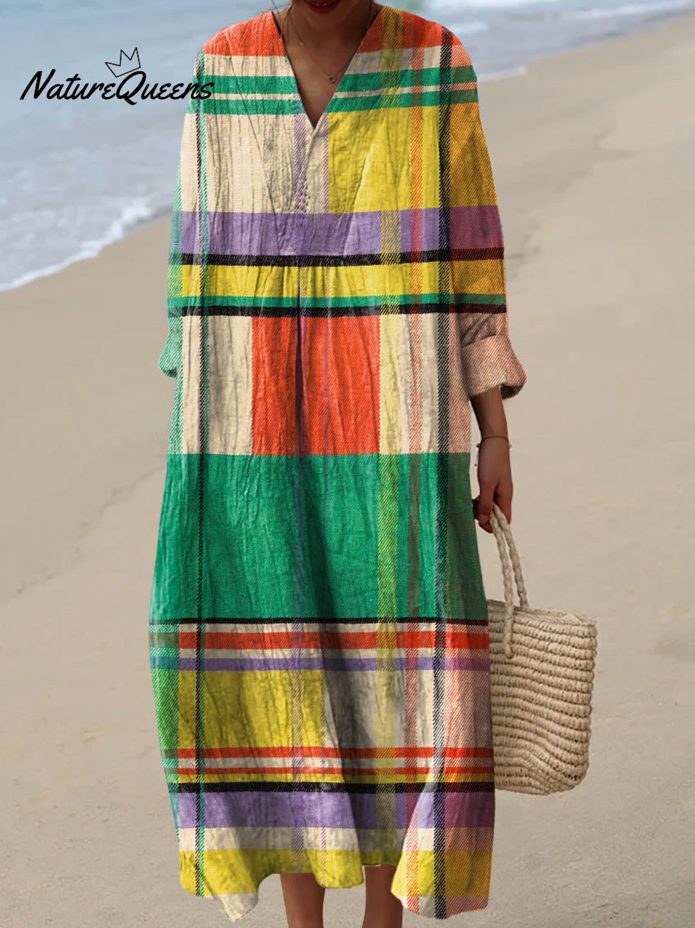 Women's Vintage Geometric Pattern Art Print Cotton Dress